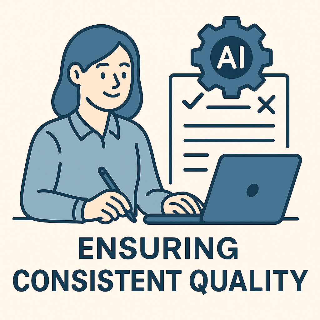 人が書くとばらつきが生じがちな文章表現も、AI支援なら指定のトーン&マナーに沿って統一できます。チェックリストに基づいた誤字脱字の自動検出や、表現のばらつき修正も組み込み済みで、納品前の校正時間も削減します。